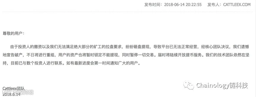 今天早些时候,有媒体表示交易所CATTLEEK宣布倒闭了,而倒闭原因为投资人撤资。