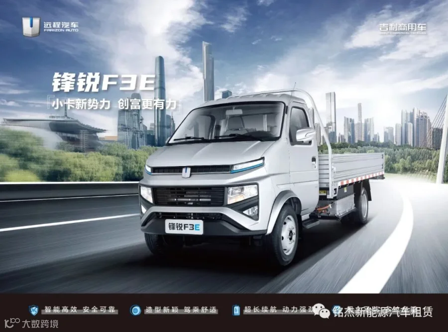 吉利远程锋锐F3E新能源微卡厢车租赁、销售,搭载两款动力电池包分别是宁德时代55.7度动力电池和亿纬61.8度动力电池;续航里程可达251-310公里。