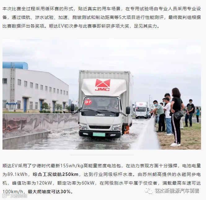 我司经销的江铃顺达EV、庆铃EV100、启腾M70和启腾N50、五菱EV50、上汽跃进等新能源商用车在这次新能源物流车挑战赛中荣获了多个不同项目的奖项。