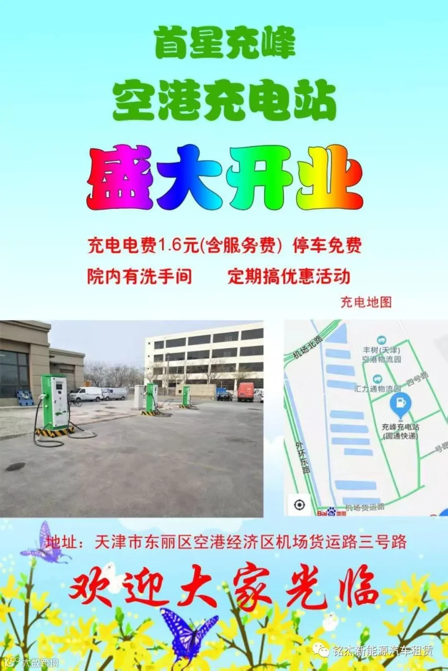 天津铭杰新开业充电场站:天津东丽区机场货运路圆通快递院内充电场站对外开放,首星充电场站。
