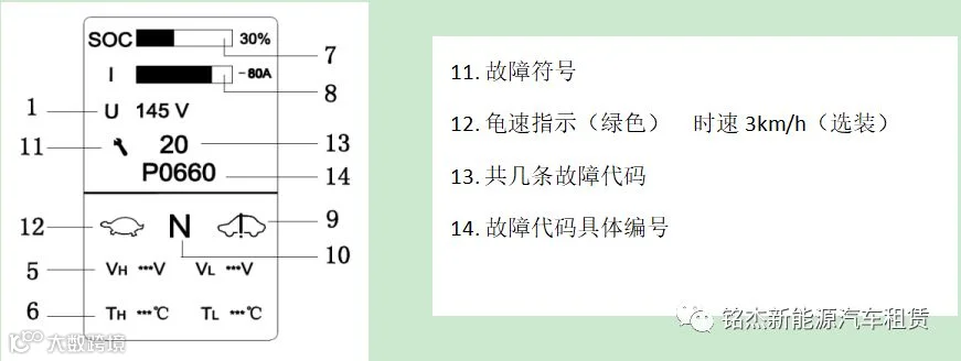 1.1车辆电量SOC低于15%时,需立即对车辆进行充电,如未及时补电,造成车辆趴窝,需客户自行承担维修和拖车费用。