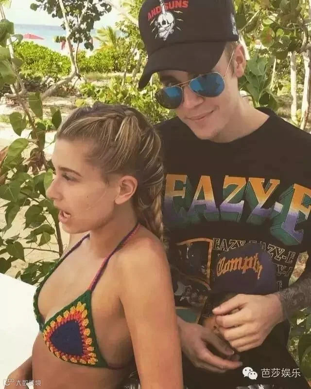 不光是Cara,Justin Bieber的新女友Hailey Baldwin 也穿着全针织拼色比基尼到海边秀了一把恩爱