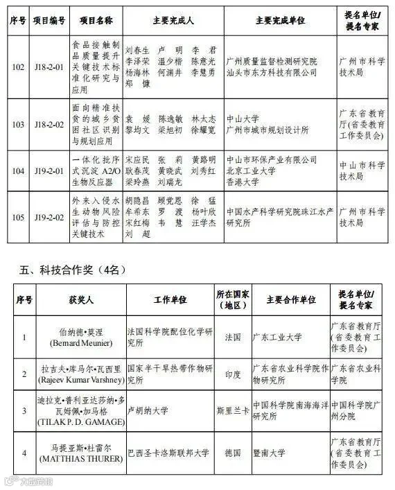 此外,授予伯纳德·莫涅、拉吉夫·库马尔·瓦西里、迪拉克·普利亚达莎纳·多瓦姆佩·加马格、马提亚斯·杜雷尔4名专家科技合作奖。