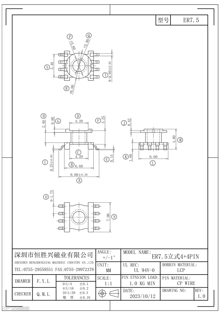 EC/ER7.5立式4+4 SMD LCP料  PC44/95磁芯 恒胜兴磁业