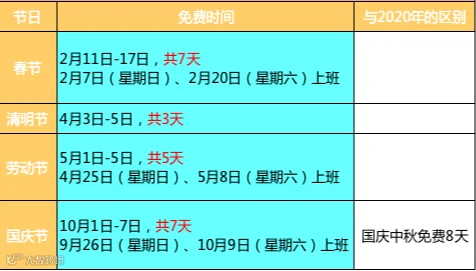 明年高速免费时间比2020少1天