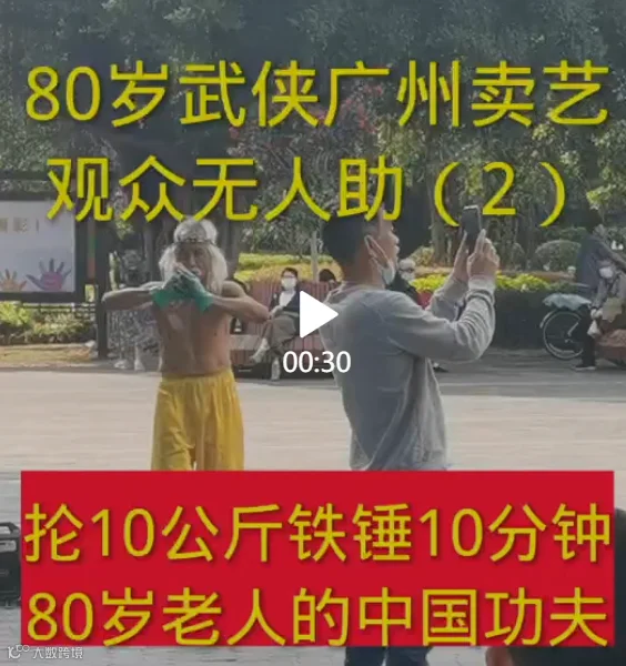 世态炎凉?80岁武侠广州卖艺、观众无人助。。。