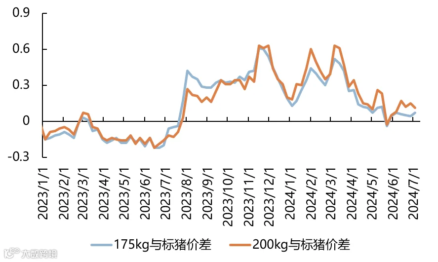 上半年随气温回升,大猪需求减少,尽管肥标价差震荡缩窄,但并未转负,异于常年变化。