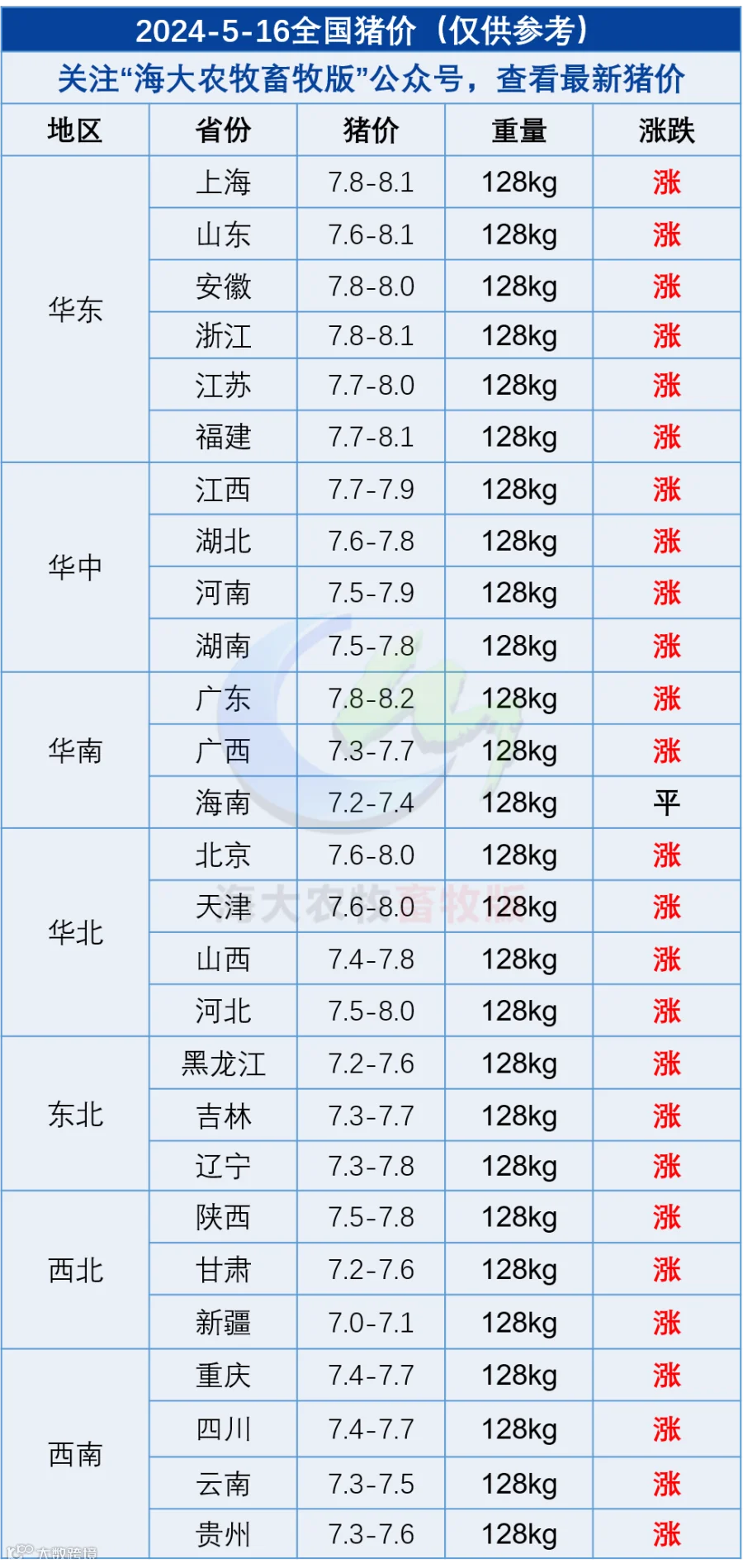 大川饲料 | 5月16日全国生猪价格——高热度二育氛围带动价格上行,猪价再度冲高!