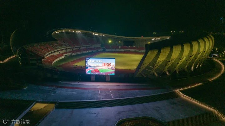 2024年6月27日晚8到9点,十五运会倒计时500天亮灯庆祝活动在清远体育中心举行。