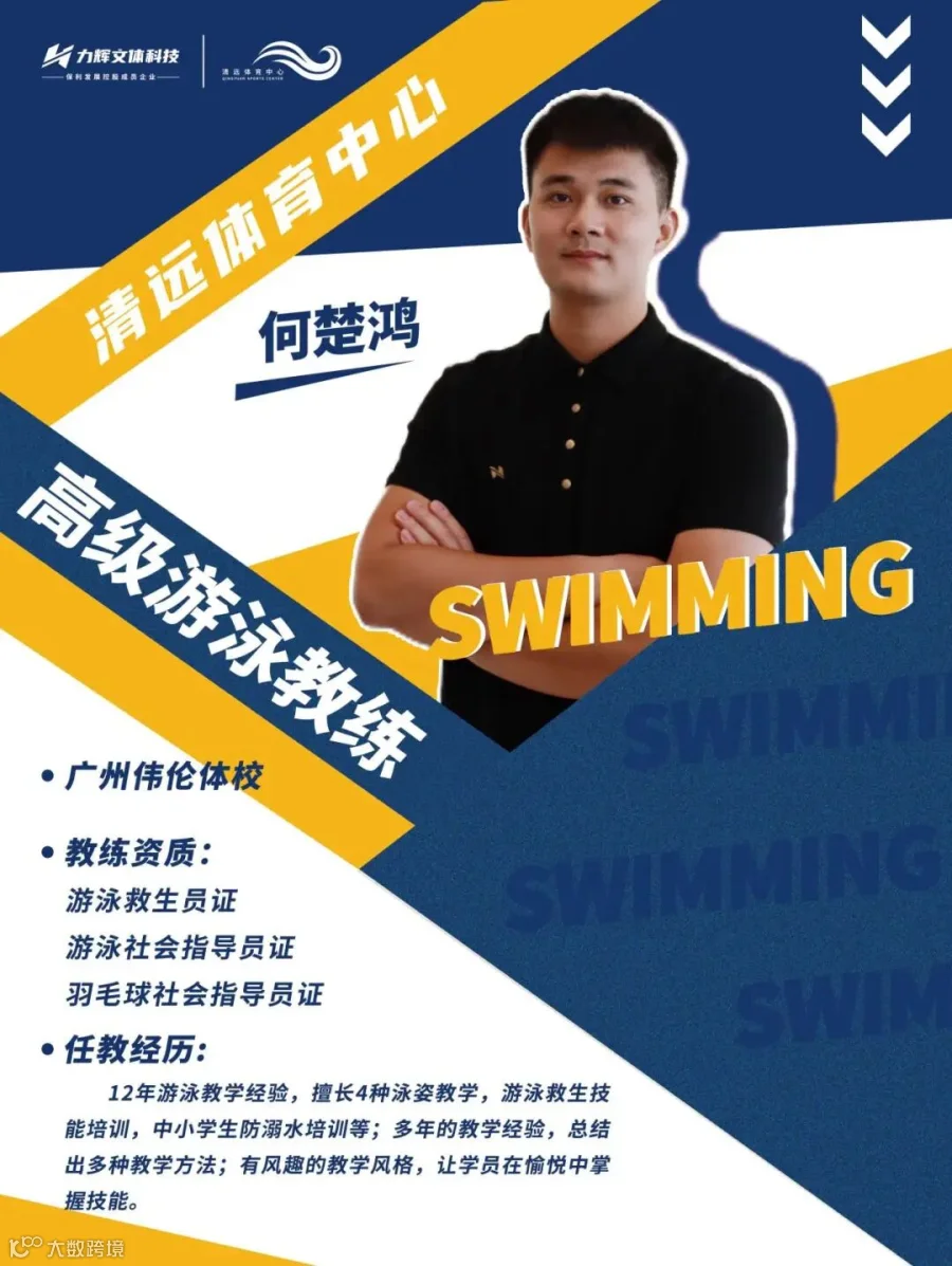 清远体育中心游泳培训班,以国家级运动健将张芳玮为教练团队带头人,并有多名国家一级游泳运动员为核心教练,搭配专业级游泳馆内的领先游泳环境,针对6-18岁儿童及青少年,以及18岁以上成年人开展培训课程,根据各学员游泳能力,分为初级班、中级班、精英班及中考班,更细致、更高效地传授游泳技能。