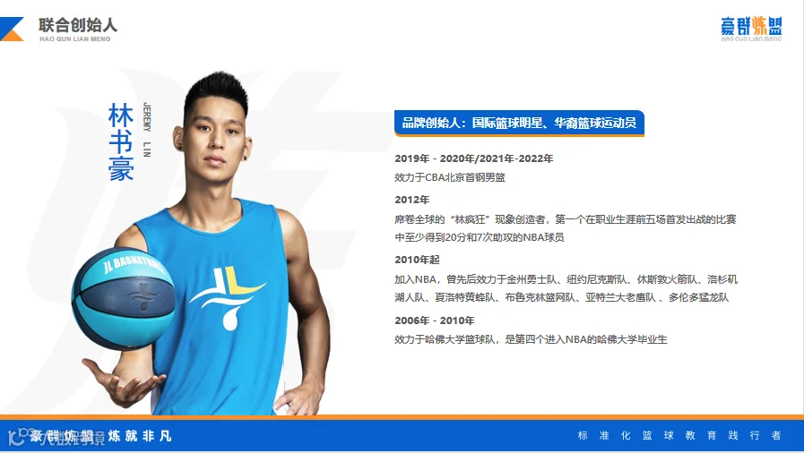 林书豪-李群篮球联盟是华裔篮球明星林书豪与中国篮球名宿李群联合创办的中国首家标准化体育教育企业,公司成立于2016年,主营业务包括课程研发、篮球培训、等级测试、线上平台、赛事活动、周边产品、品牌加盟等板块,致力打造O2O体育产业链,建立以体育教育为核心的多元化国际体育品牌。