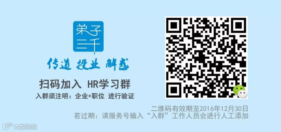 为了把更多的知识,智慧传递出去,睿之源微课堂目前正在招募合伙人群主,让你真正成为那个授人渔的知识使者。如果你手上有HR社群,或HR伙伴,只要满30人以上就可以申请成为知识传递合伙人了哦!作为我们的合伙人,不仅能把专业的HR知识传播给更多有需要的人,做知识的领袖,还有额外的内部福利,以及丰厚的资金回报,请扫描下方二维码添加好友,发送“群主”,工作人员会发送报名表。