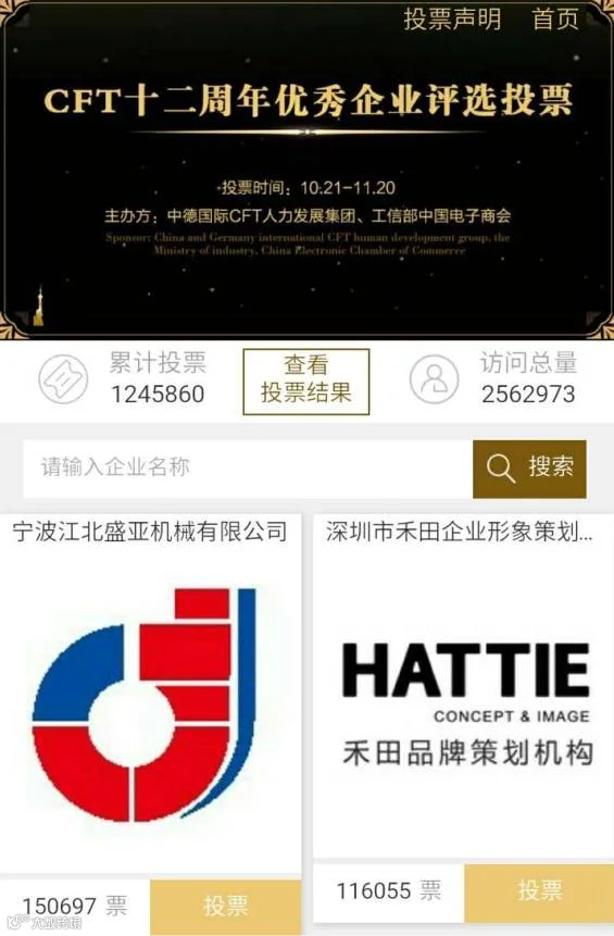 截止11月20日,CFT十二周年庆优秀企业评选赛程最终排名已经出炉,此次投票竞争非常激烈,跌宕起伏,活动累计关注量突破265万,投票总数超过124万。恭喜获得最终排名前30的企业,通过此次活动看到了CFT家人企业的凝聚力和拚博精神,相信因着这次的参赛,必增强企业的公信力、美誉度而更上一层楼!