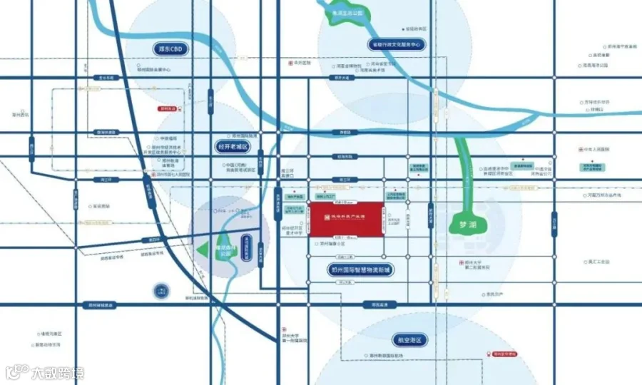 项目毗邻滨河新城和经开自贸区,雄踞郑州国际物流园区核心,北邻郑东新区,南接国际智慧物流新城。周边汇集了近百家世界500强企业、205家外商投资企业和29个上市公司直投项目,各类企业数量超过2.4万家。上汽、宇通、海尔等知名企业在此集聚,完善的产业链条为企业提供优越的发展环境。