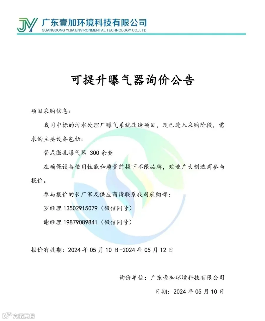 导读:壹加环境采购信息