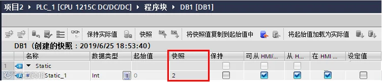 4、值得注意的是上传的DB块包含起始值与快照值,快照值也就是上传时DB块变量的实际值,可以用来将其加载为实际值或初始值。