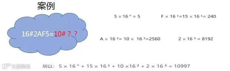 方法:要从右到左用二进制的每个数去乘以16的相应次方,然后这些数字相加就是了。
