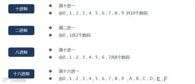 当然,人们输入计算机的十进制被转换成二进制进行计算,计算后的结果又由二进制转换成十进制,这都由操作系统自动完成,并不需要人们手工去做。人们通常采用的数制有十进制二进制、八进制和十六进制。