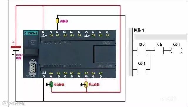 6,即使外部常闭按钮松开I0.5没有了接通,复位线圈Q0.1依然被固定在复位状态。Q0.1就没有了输出,实现了停止功能。