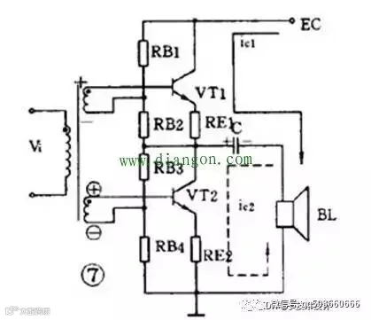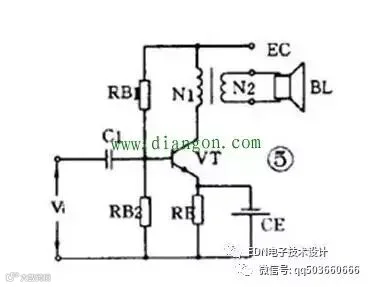 ② 变压器耦合(见图b):优点是阻抗匹配好、输出功率和效率高,但变压器制作比较麻烦。