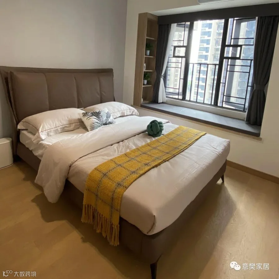 次卧选择了暖色调,比起冷色系会更加贴心,也更易有一种情感上的共鸣。沐浴着入室的暖阳,让身心住进了最美的时光。