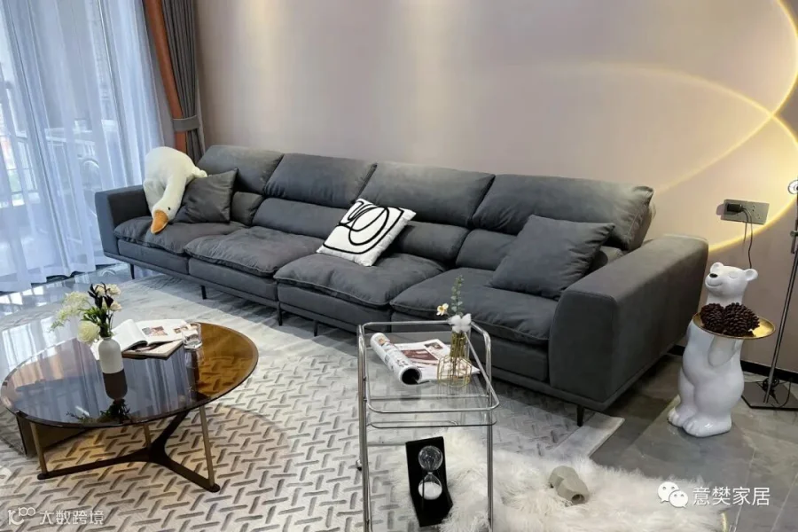 高级灰的主沙发低调优雅,亲肤的科技布质感倍显,加入了简约的背景墙呼应起来,维系着空间的统一性。