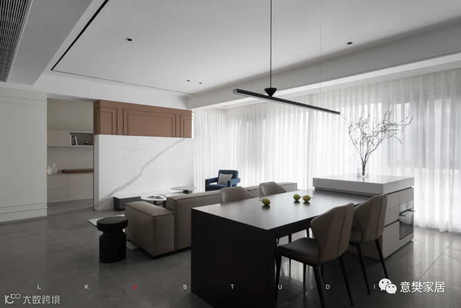 餐厨空间一体化的处理,轻松拓宽空间视野,开放式的布局模式互动性得以增强。