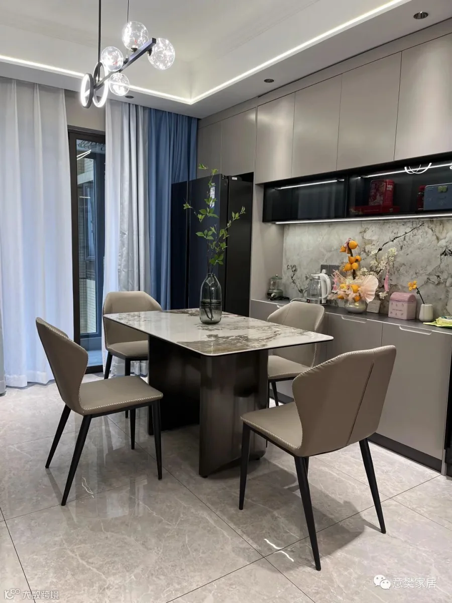 不知从何时起,高级灰大量的运用在现代极简风格之中。以高级灰墙布为沙发背景墙,搭配精致装饰+钢琴沙发,静谧的感觉油然而生,在家居中感受如梦般的闲情,让人们感悟似水年华的家居生活。