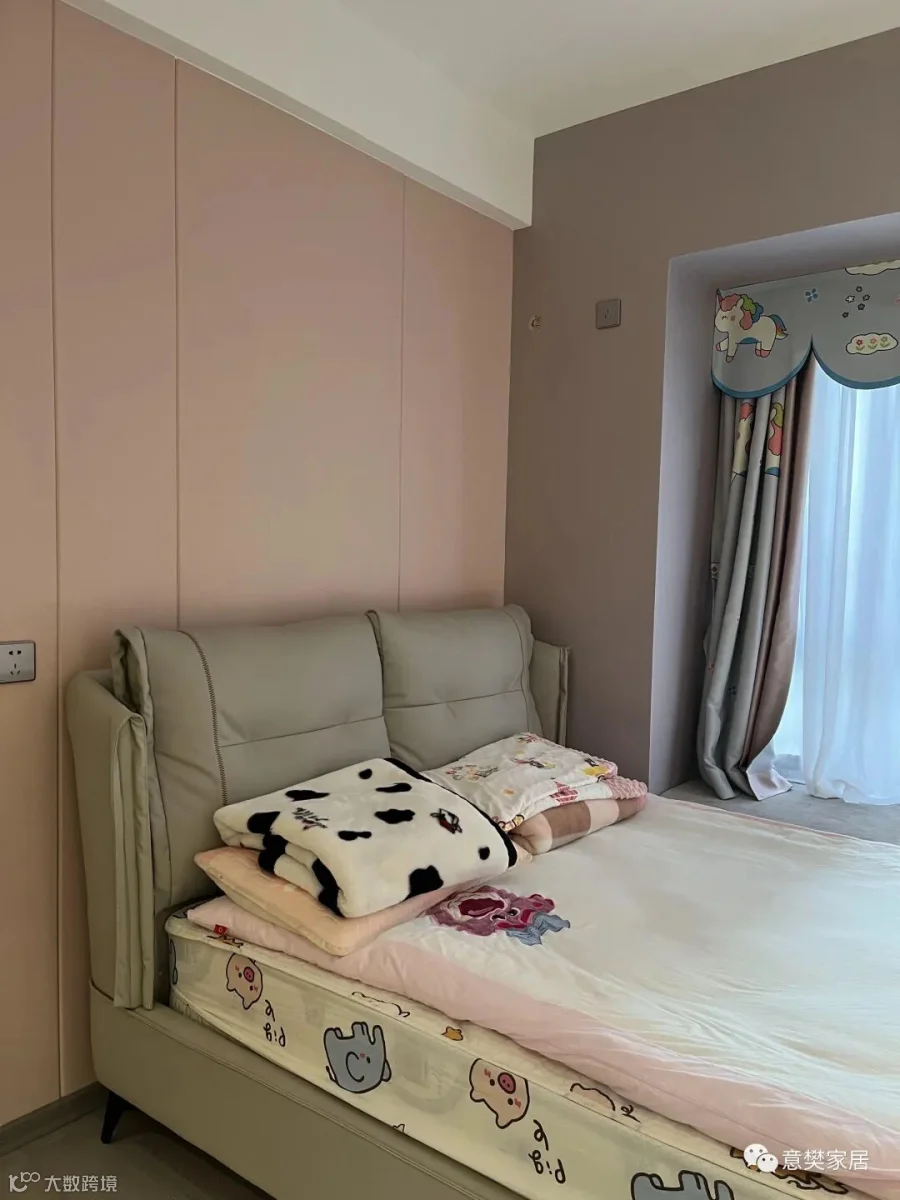 女孩房则是溢出掩藏不住的嫩少女心,采用粉红色的木饰面为底。