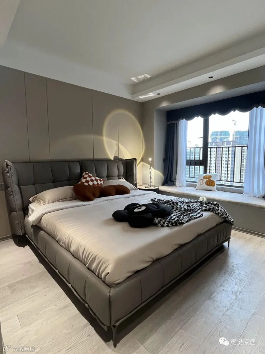 色调平静而淡然的主人房中运用木饰面亦是一种流行趋势。其次可以增加层次,彰显出柔美灵动却又高级神秘,让卧室的档次提升不止,淡然与柔美的碰撞不经意间透露了不凡的品味。