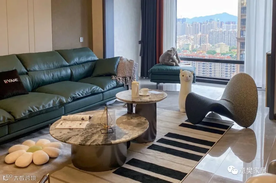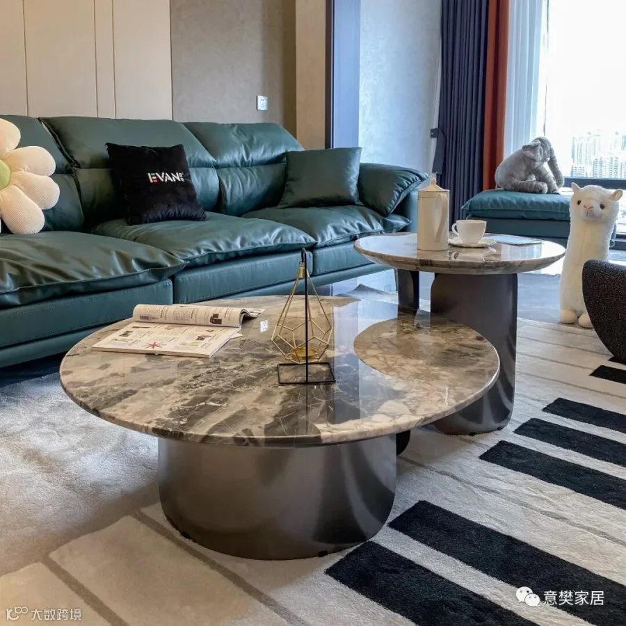 越是极简的家具,越是符合我们对家的期许。直排沙发与圆几的组合,经典耐看。外方内圆的布局模式,平衡出空间的温度感。