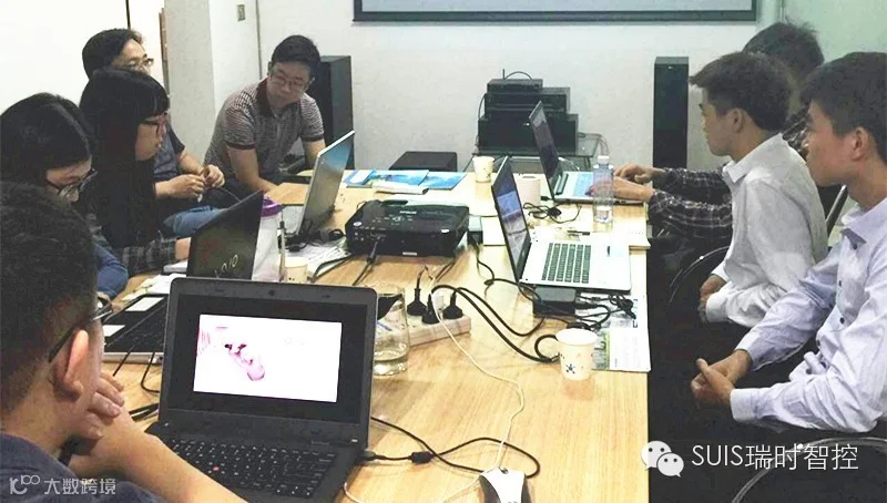 大学生与公司管理层一起交流探讨嵌入式智能家居的未来发展趋势