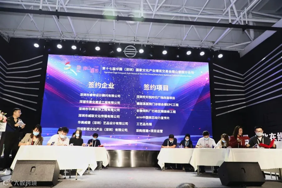 第十七届文博会期间睿园分会场着重对接交易量,落实园区代表性文化企业的商务合作。深圳市睿特设计顾问有限公司、深圳市建业建设工程有限公司、深圳市华典装饰工程有限公司、深圳市威联文化传媒有限公司、华美威德(深圳)艺品设计有限公司、迈诺影视文化(深圳)有限公司企业与各自项目方进行了项目签约,体现了企业作主、行业助力,共商共议、携手共赢,不忘初心、战略同盟。会场还安排了灯光秀、沙画表演等节目,增加了开幕式的可观赏性。