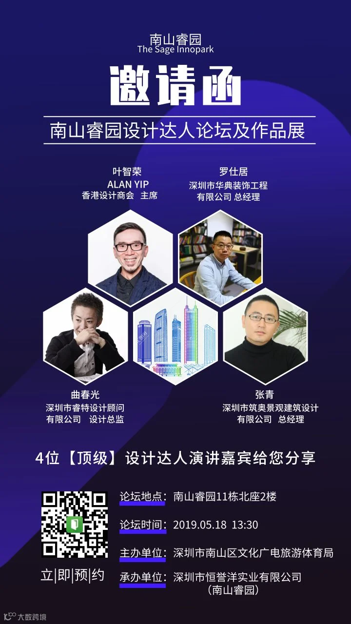 5月18日,第十五届中国(深圳)国际文化产业博览交易会南山区配套活动,南山睿园设计达人论坛将在南山区桃源街道南山睿园文化产业园隆重举行,邀请您来参加活动!