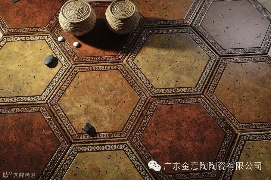 金意陶六角砖的设色与设计独具匠心,三个颜色的混合铺贴给视觉带来的舒适度前所未有,瓷砖设计师们寄情于山水间捕捉灵感,用最传统的写意手法,传情达意,释放心灵。