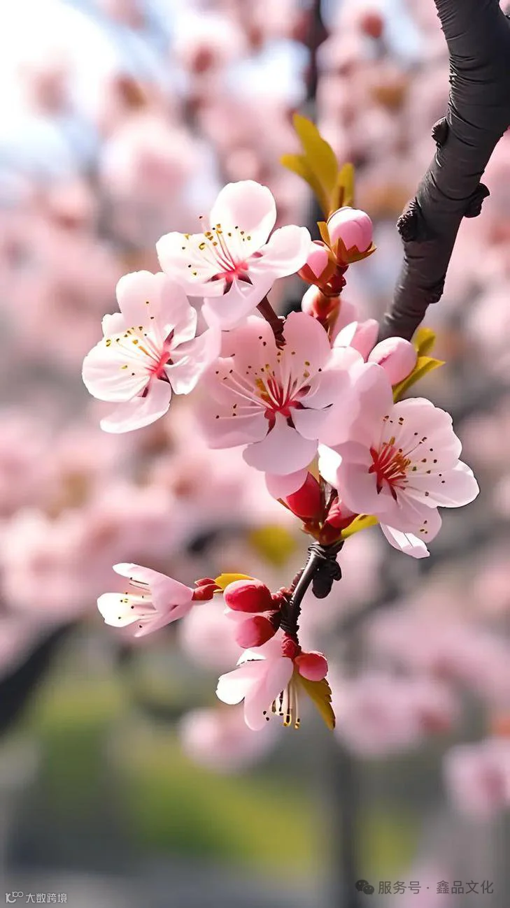 深粉的桃花则更加饱满、深沉,带着成熟的韵味,似那燃烧的火焰,热情奔放,点燃了整个春天的活力。