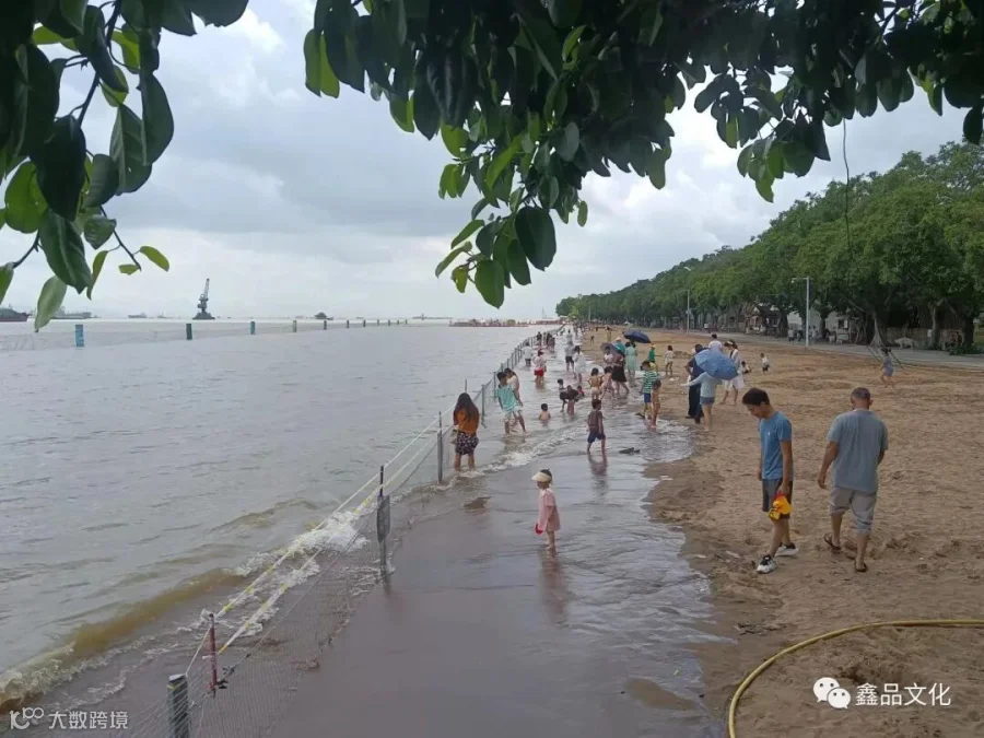随后,我们母子就往里面一直走,远远看到海水从远处不断地涌来,但靠岸的附近被一条铁线隔开了。许多大人孩子在沙滩处玩耍,特别是一些小孩,光着屁股在海水里追逐打闹,非常开心,还有些爬上一只大大的石龟背上,充满童趣。