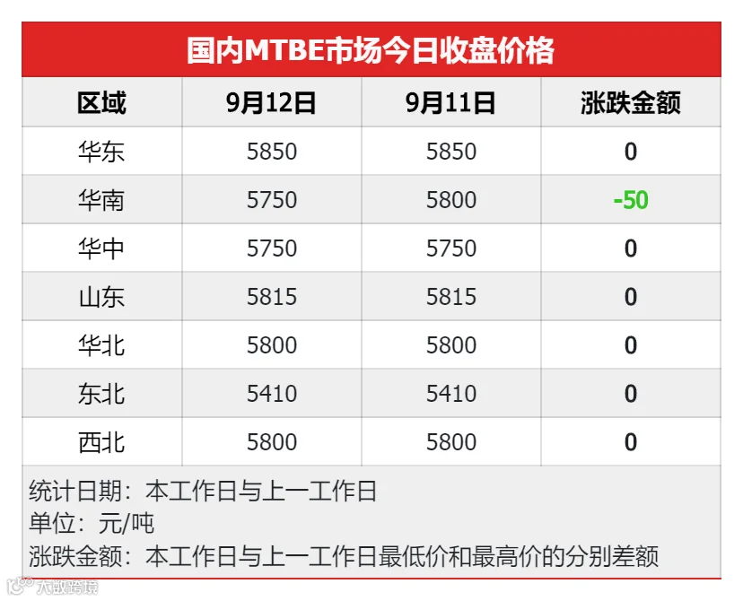 其他产品:叔丁醇、MMA、异丁烯行情均有下跌,异丁烷持稳。