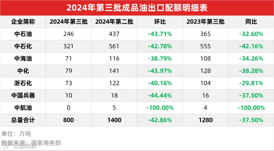 2.第三批成品油出口配额下发,总量800万吨。