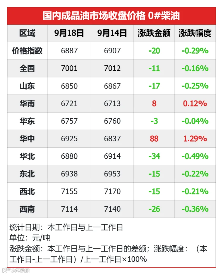 今日全国成品油行情下跌为主。山东地区92#汽油主流成交价格为7550-7750元/吨,0#柴油6540-6670元/吨。山东地炼方面,原油收盘上涨,消息面利好有限,加上中秋假期期间,厂家出货表现一般,需求面支撑不足,今日价格仍承压下行;主营方面,节日期间高速货运受限,市场成交氛围欠佳,部分高价资源回调整理,综合之下,今天主营单位多降价刺激出货。