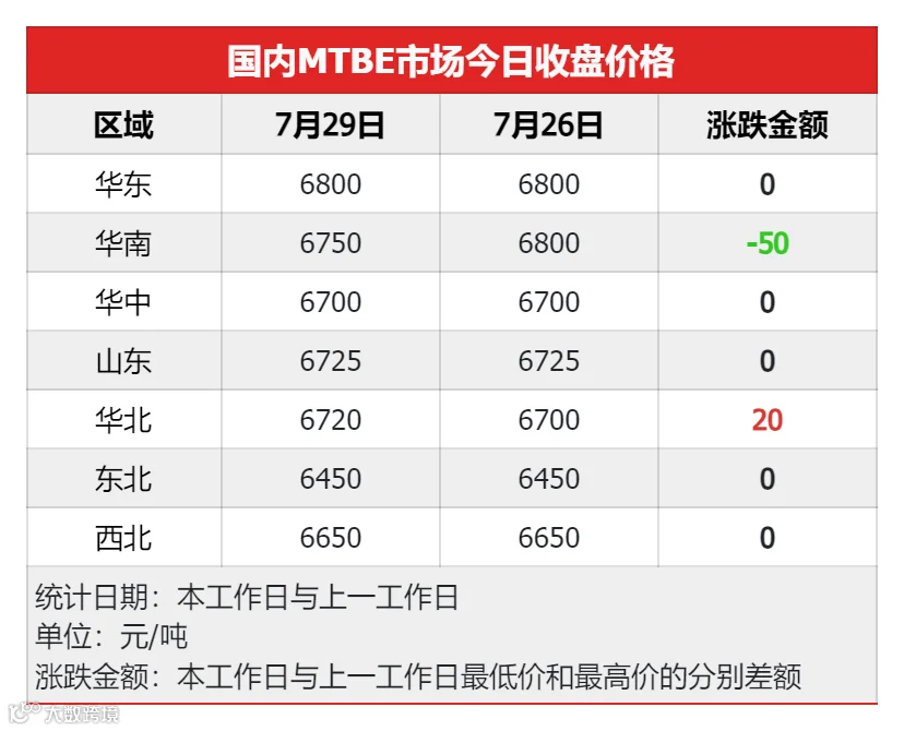 由于上周末部分装置停车检修,资源供应进一步收紧,今天MTBE市场挺价运行,零星上探,华南地区相较于上周五下调50元/吨,华北地区相较于上周五上调20元/吨,其余地区均稳价运行;北方地区下游入市积极性较好,交投氛围良好,南方地区需求偏弱,交投相对平淡。