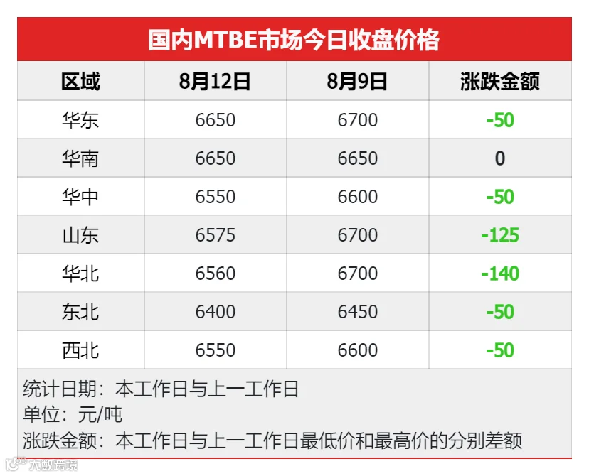 今天MTBE市场相较于上周五下跌为主,除华南地区报盘维稳外,其余地区报盘均下调50-140元/吨;经下调后局部低价资源走货好转,下游业者适度求购,整体成交氛围良好。
