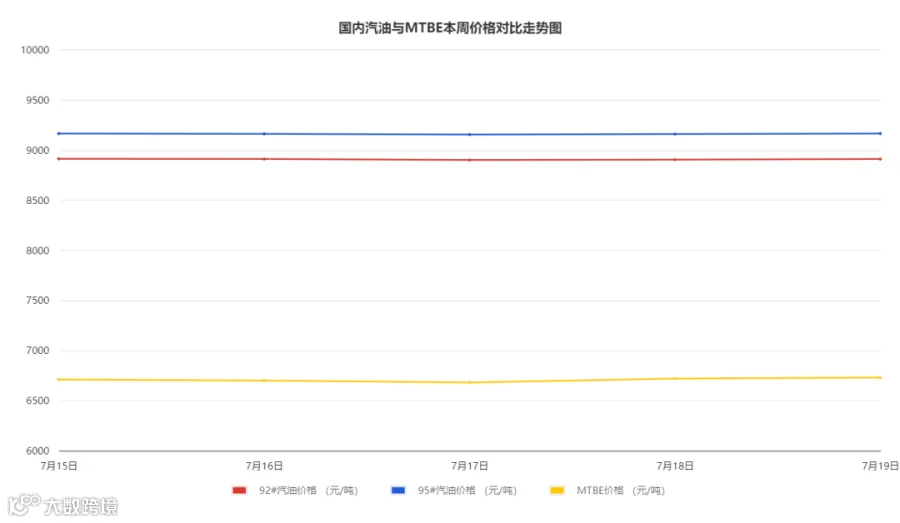 本周期,国内MTBE市场均价约6734元/吨,相较于上一周期上涨85元/吨,涨幅1.28%。