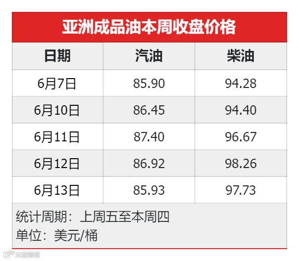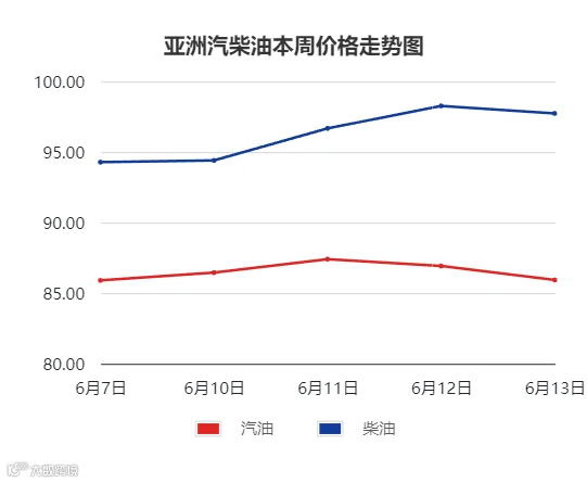 本周期,亚洲汽油价格先涨后跌,亚洲柴油价格震荡上涨。