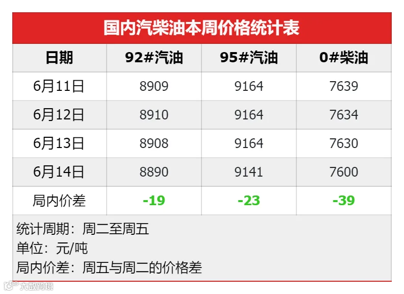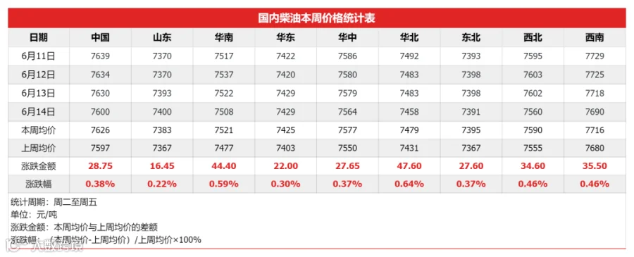 周内原油连续走高,但变化率维持负向发展,零售限价下调窗口如期开启,市场信心不足。需求方面来看,端午假期提振,加之车载空调用油增多,汽油终端需求相对稳健,但节后集中补货之后,刚需回落;柴油方面,高温及降雨天气制约下,终端需求表现平平,不过柴油成本面仍有支撑。总体来看,空好因素交织下,汽柴油价格先涨后跌,业者保持小单刚需补货节奏。