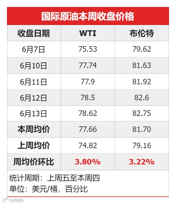 上周五到本周四,原油价格连续走高,WTI环比涨3.8%,布油环比涨3.22%。
