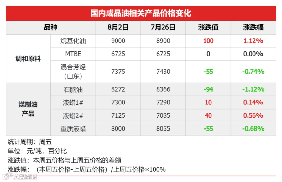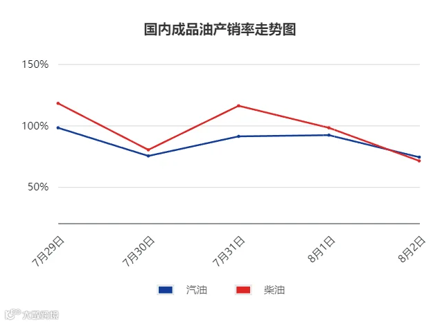 截至8月1日,社会单位的柴油库容率为29.87%,环比上涨0.26%;山东地炼汽油库容率为23%,环比下跌0.04%,柴油库容率23.31%,环比下跌0.23%。