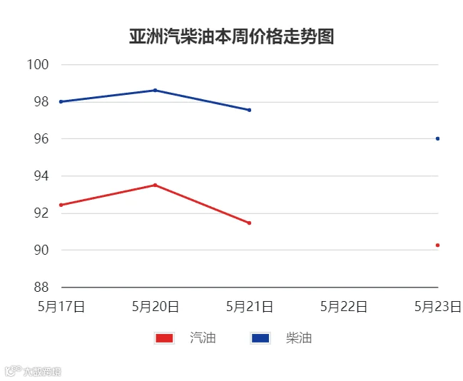 柴油方面,中国还没有正式出口6月柴油船货,且印尼国家石油公司有意进口亚洲现货柴油,支撑亚洲柴油价格小涨;但因欧洲对柴油需求低迷,来自中东和印度的柴油转为销往澳大利亚和新加坡,导致亚洲柴油市场长期供应过剩,亚洲柴油价格承压下行。