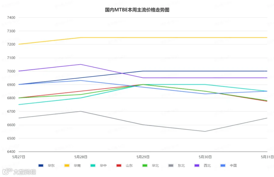 本周国内MTBE市场均价约6880元/吨,相较于上一周期上涨30元/吨,涨幅为0.44%。