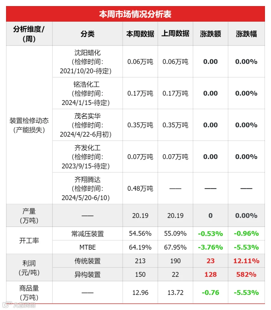 本周期,甲醇市场、异丁烯市场均偏弱整理。